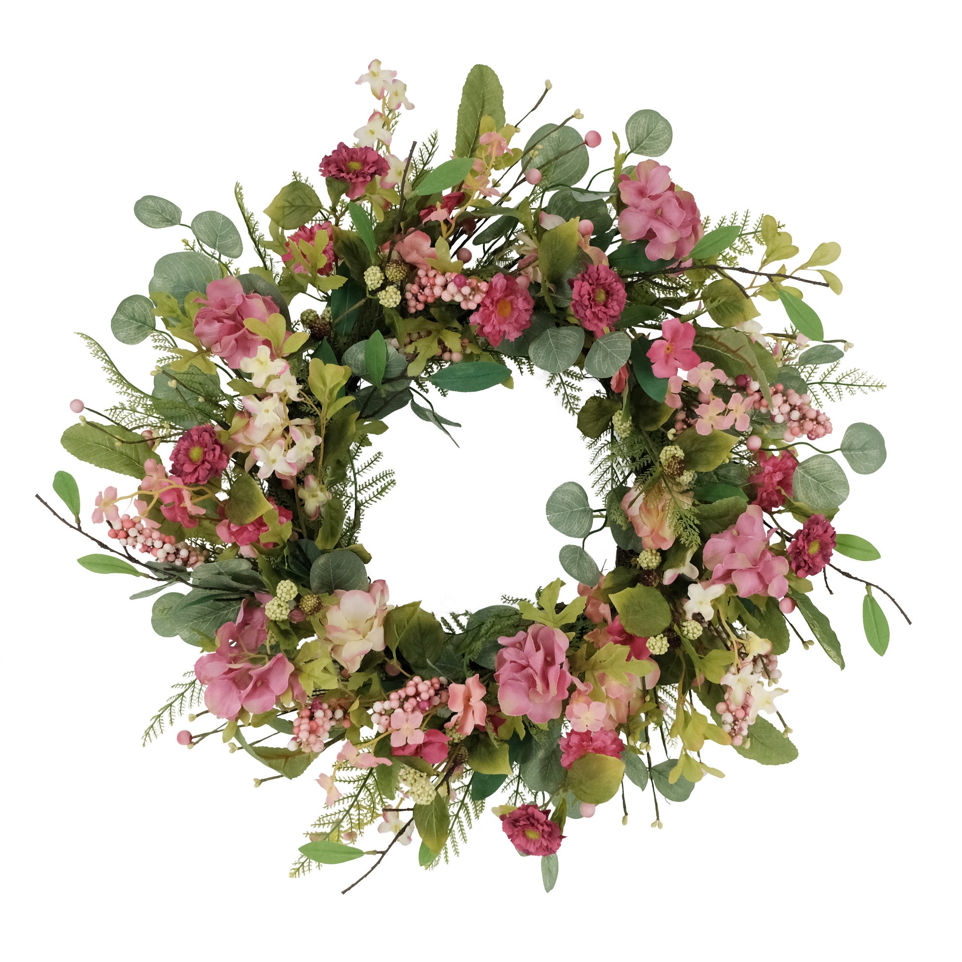 24" Artificial Chrysanthemum And Hydrangea Floral Spring Wreath