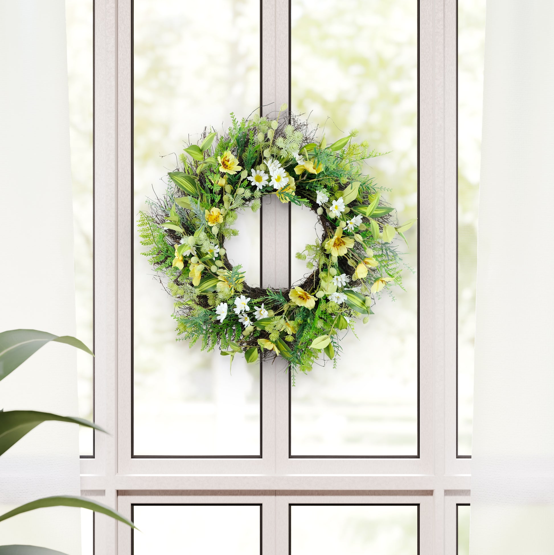 24" Artificial Daisy & Dogwood Floral Spring Wreath