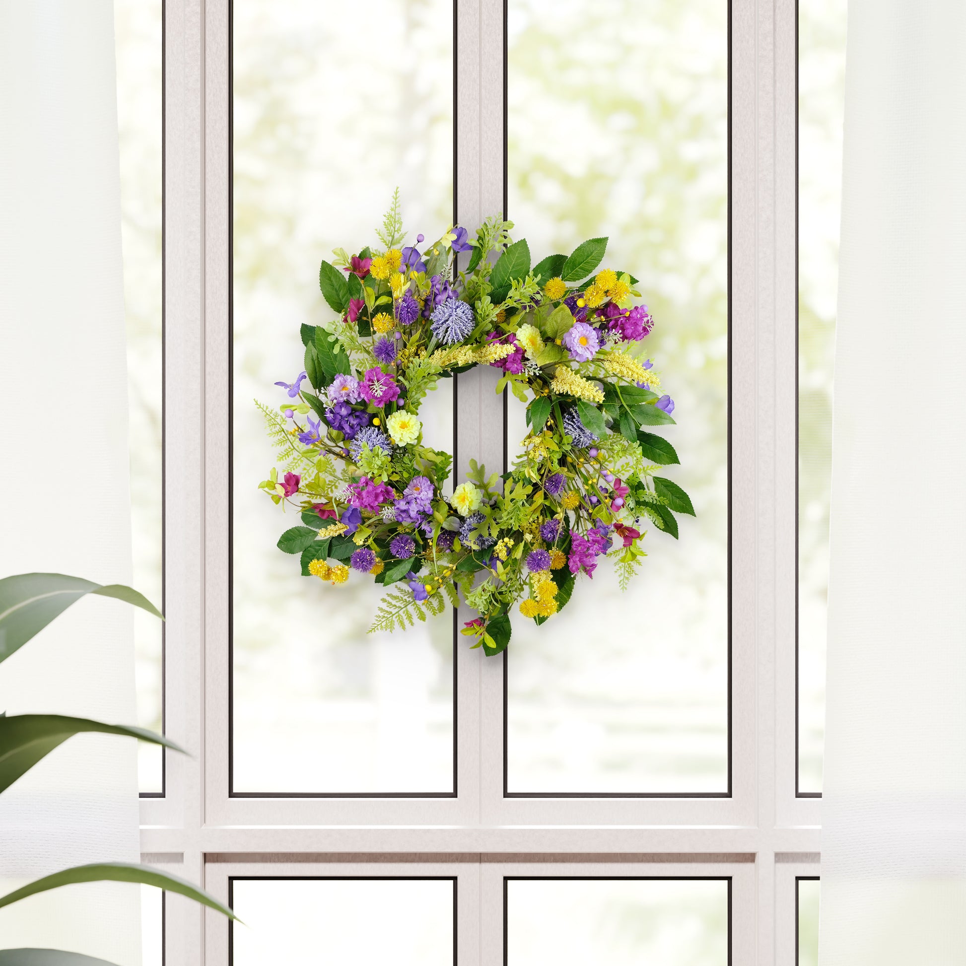 24" Artificial Echinops & Chrysanthethemum Floral Spring Wreath