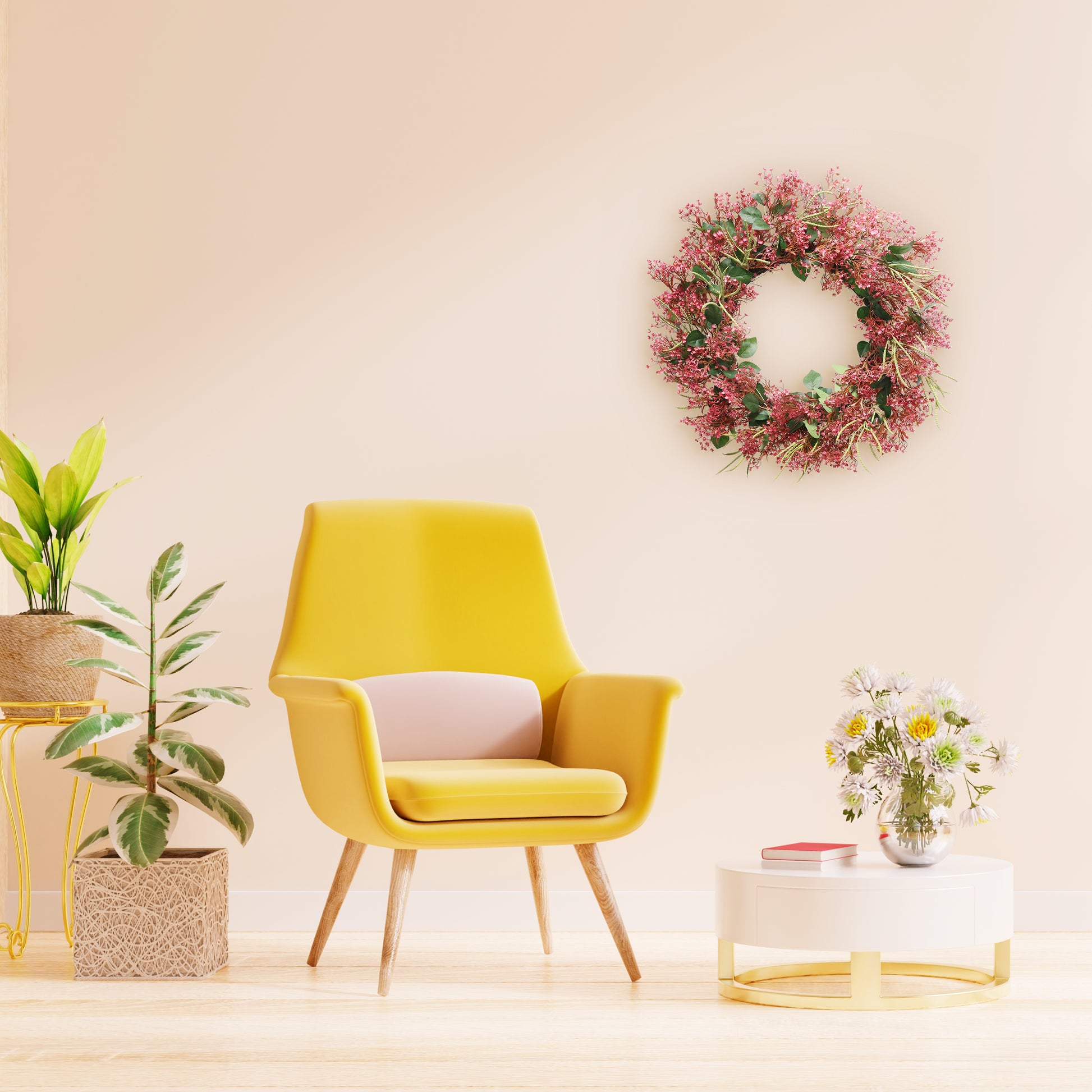 24" Artificial Gypsophila Floral Spring Wreath