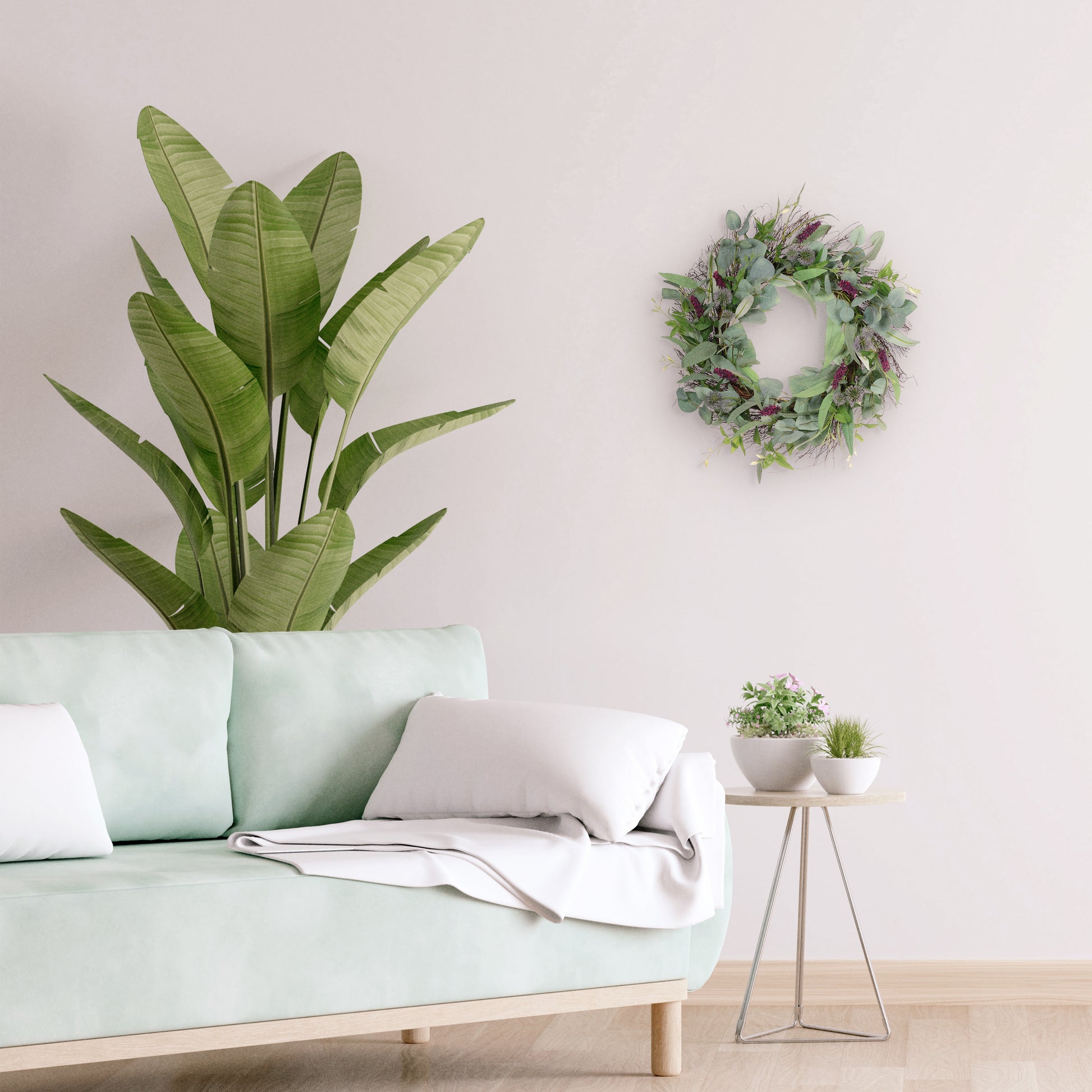 24" Artificial Lavender Floral Spring Wreath With Green Leaves