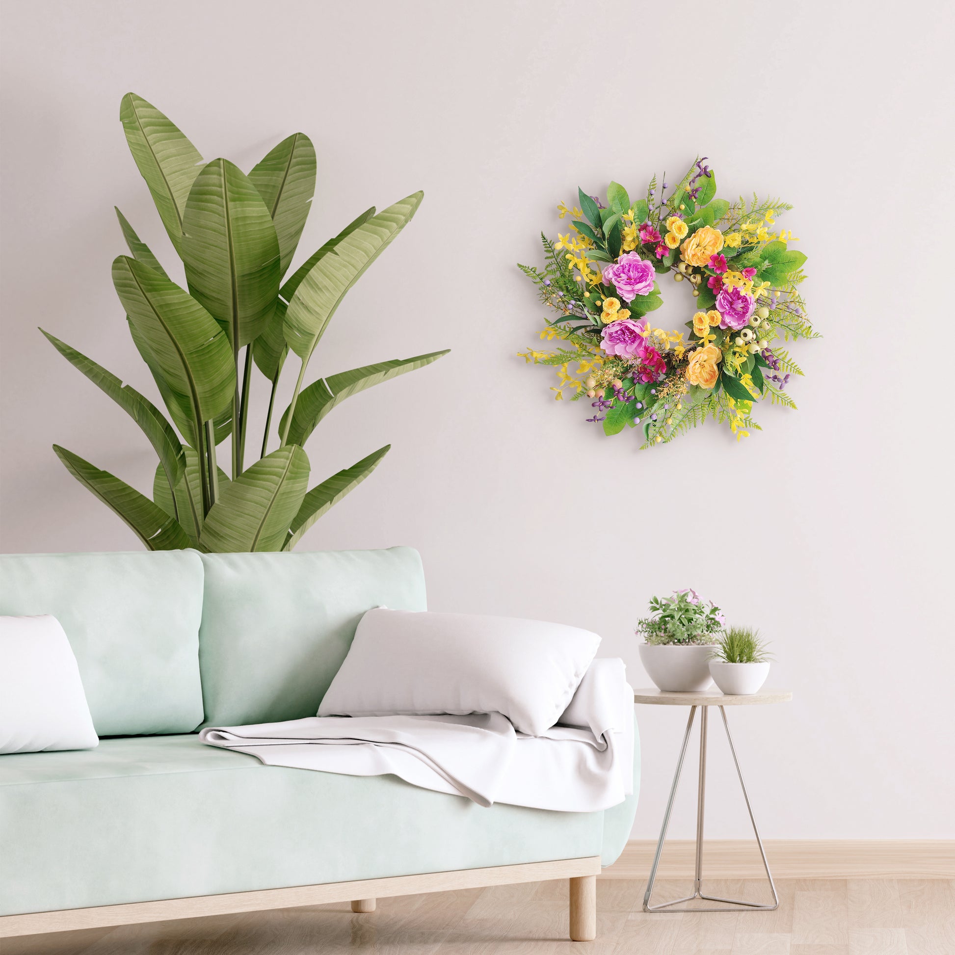 24" Artificial Peony & Winter Jasmine Floral Spring Wreath