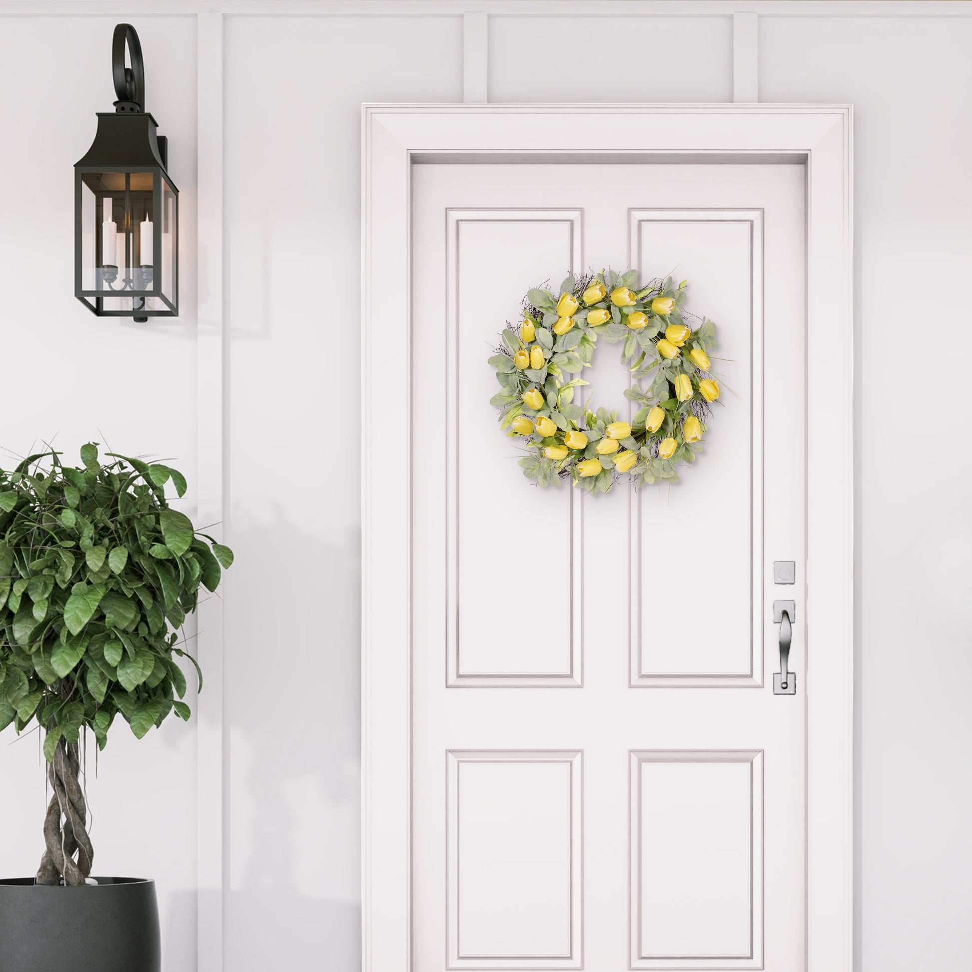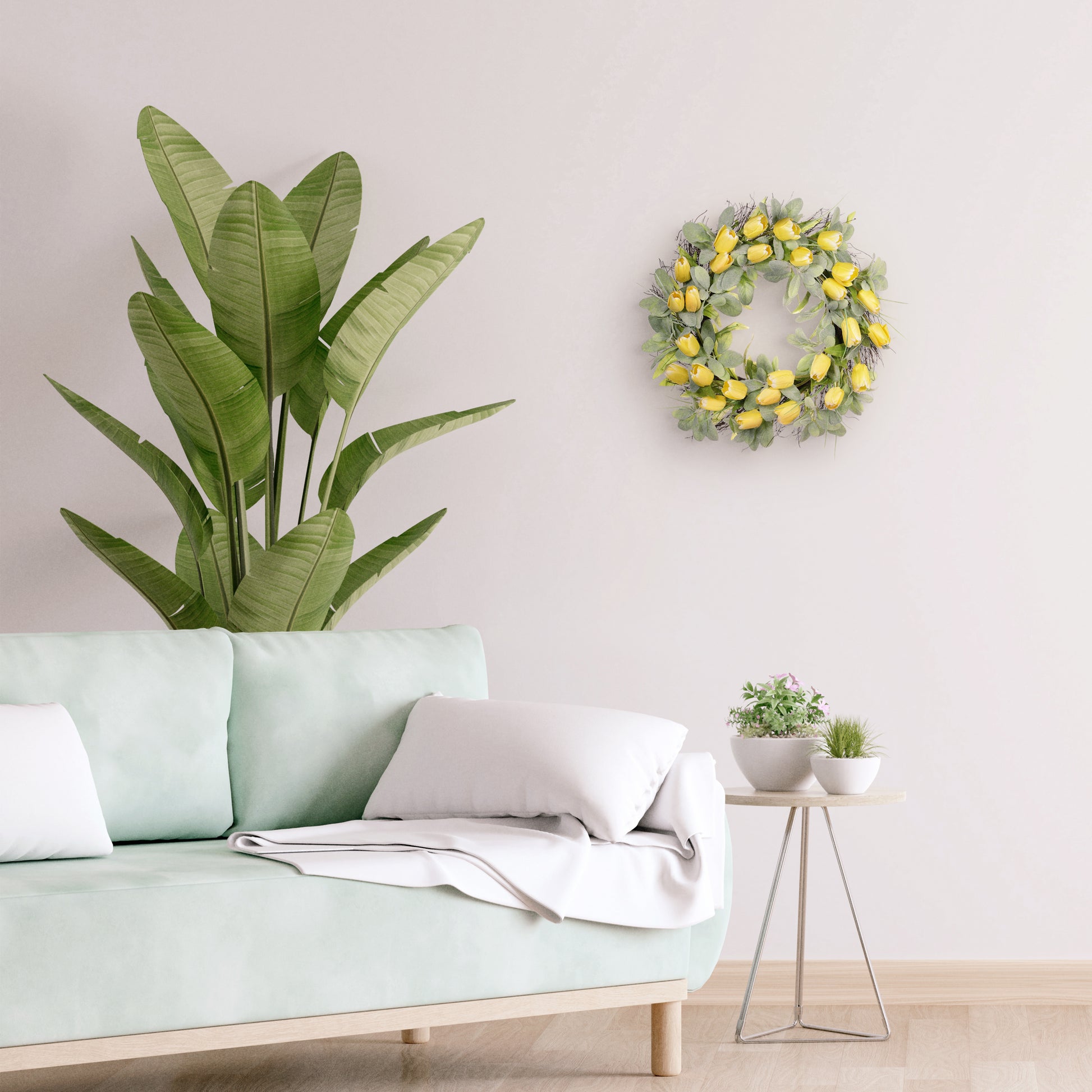 24" Artificial Tulip Floral Spring Wreath With Green Leaves