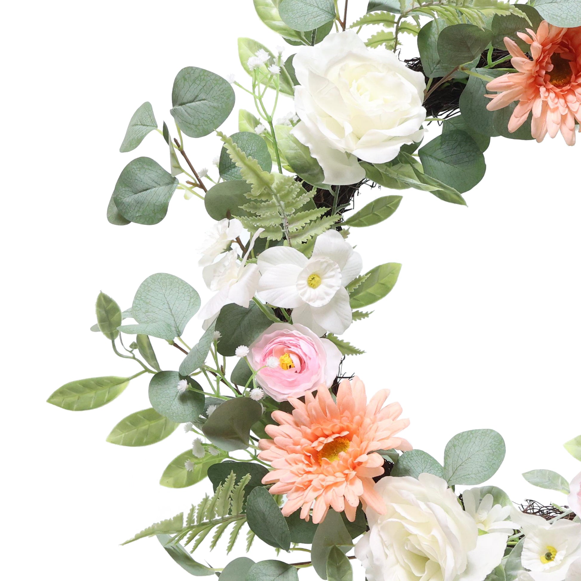 24"Artificial Chrysanthethemum Rose & Ranunculus Floral Spring Wreath