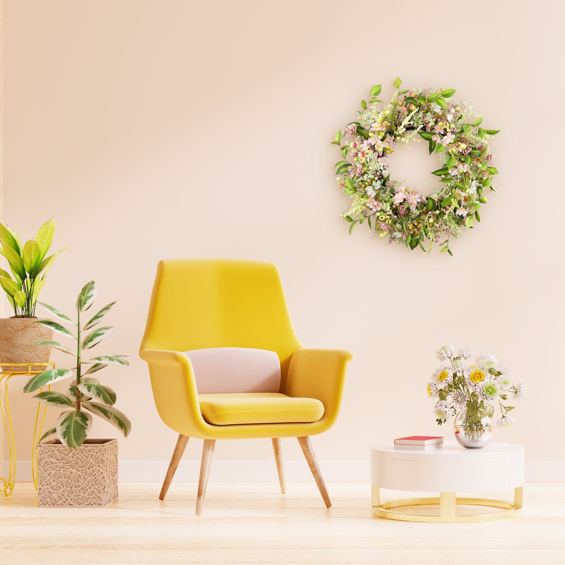 26" Artificial Dogwood Floral Spring Wreath