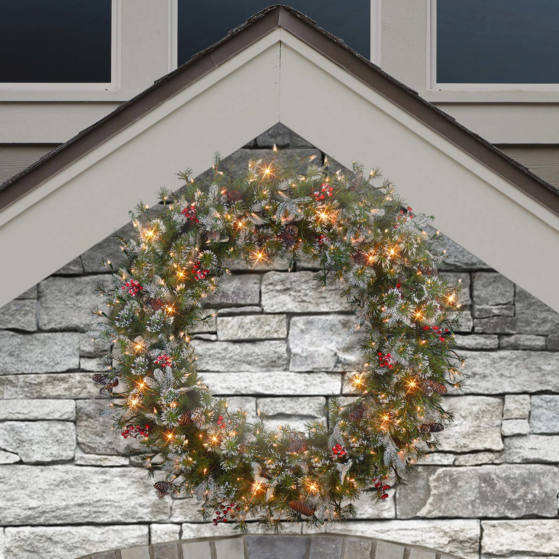 48 in Pre-Lit Glittery PE/PVC Wreath, 560 Tips, Pine Cones, Berries, 250 UL Clear Lights