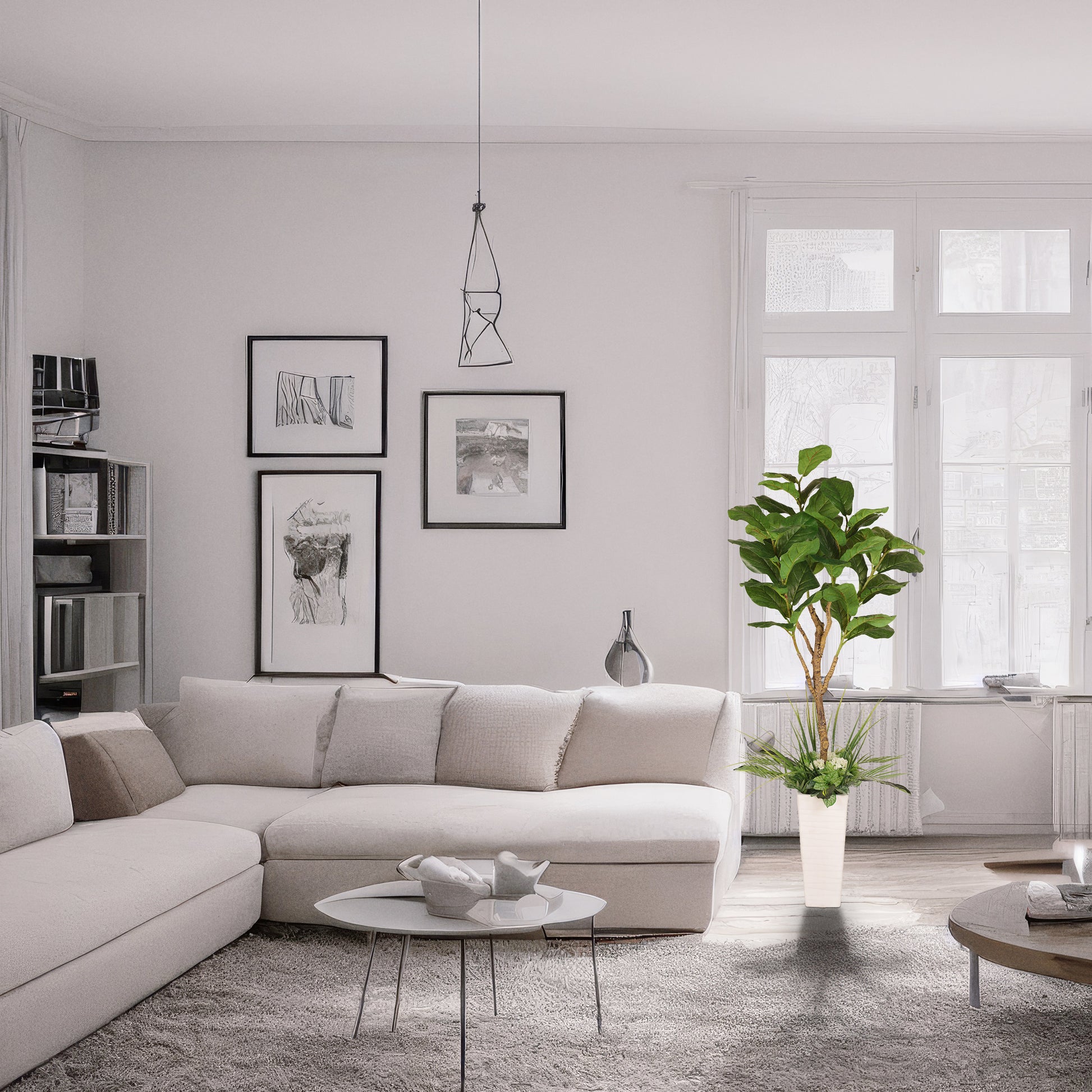 6 ft. Artificial Fiddle Leaf Ficus Tree with White Decorative Pot