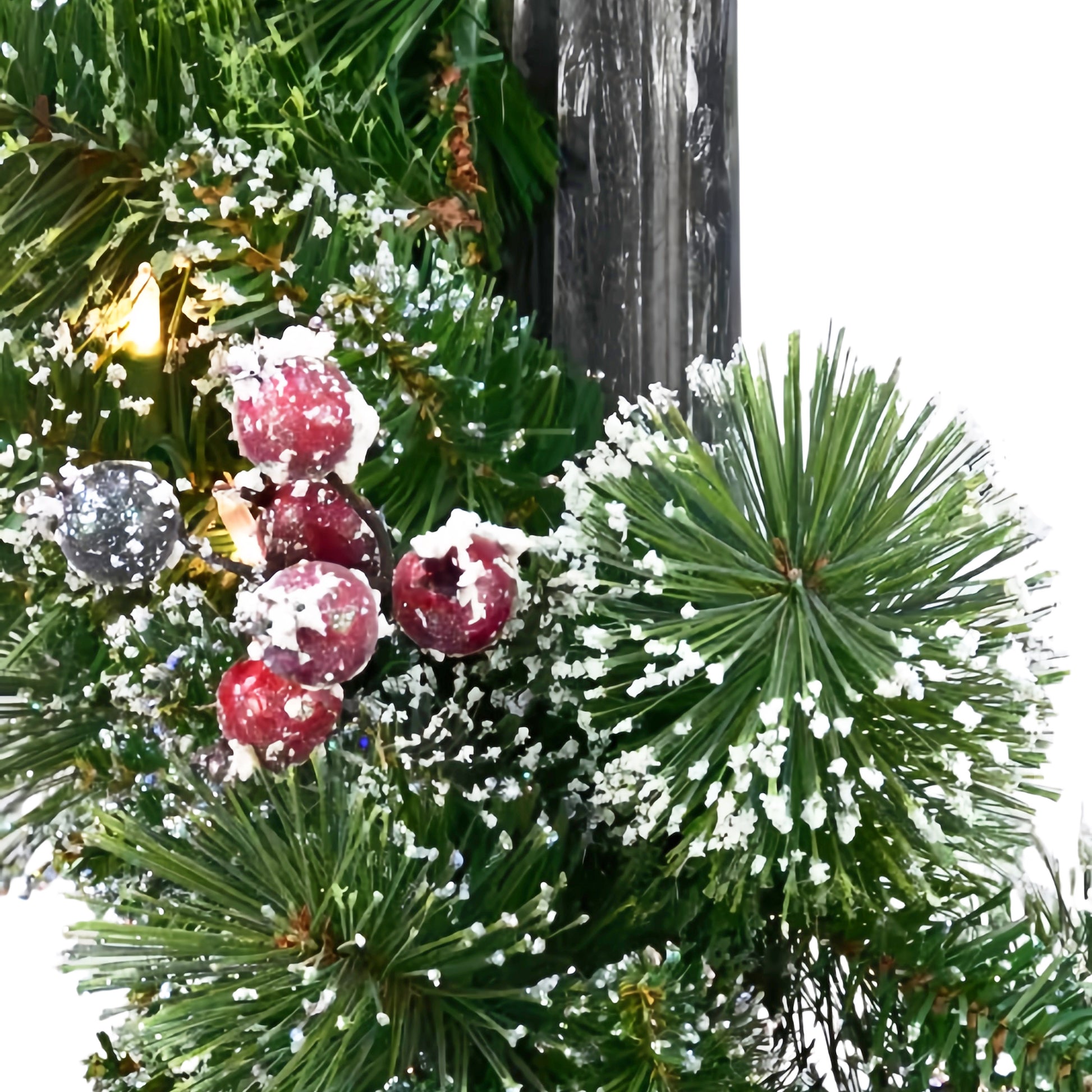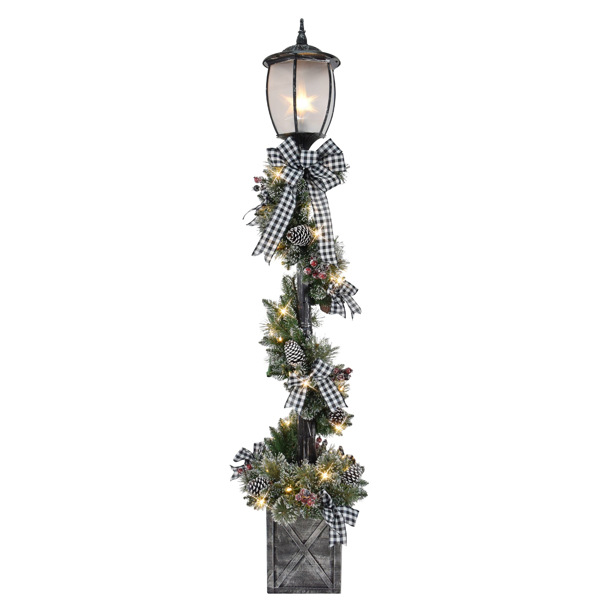 7ft Pre-Lit Snowy Lamp Post, 6 Bows, 200 Branch Tips, 50 Warm White LED Lights, UL Adaptor