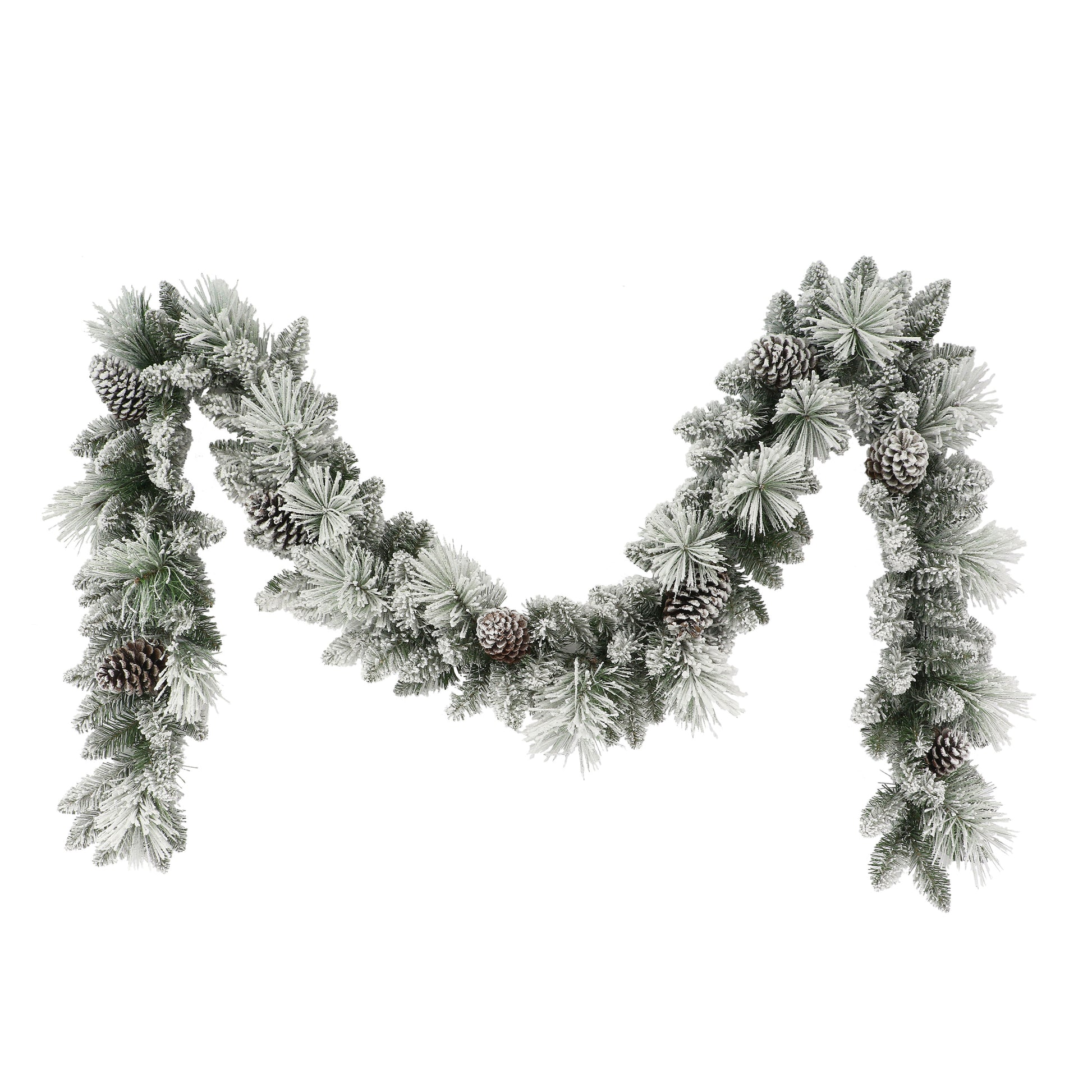 9 ft x 10 in Flocked Berkshire Spruce Garland 170 Tips Pine Cones