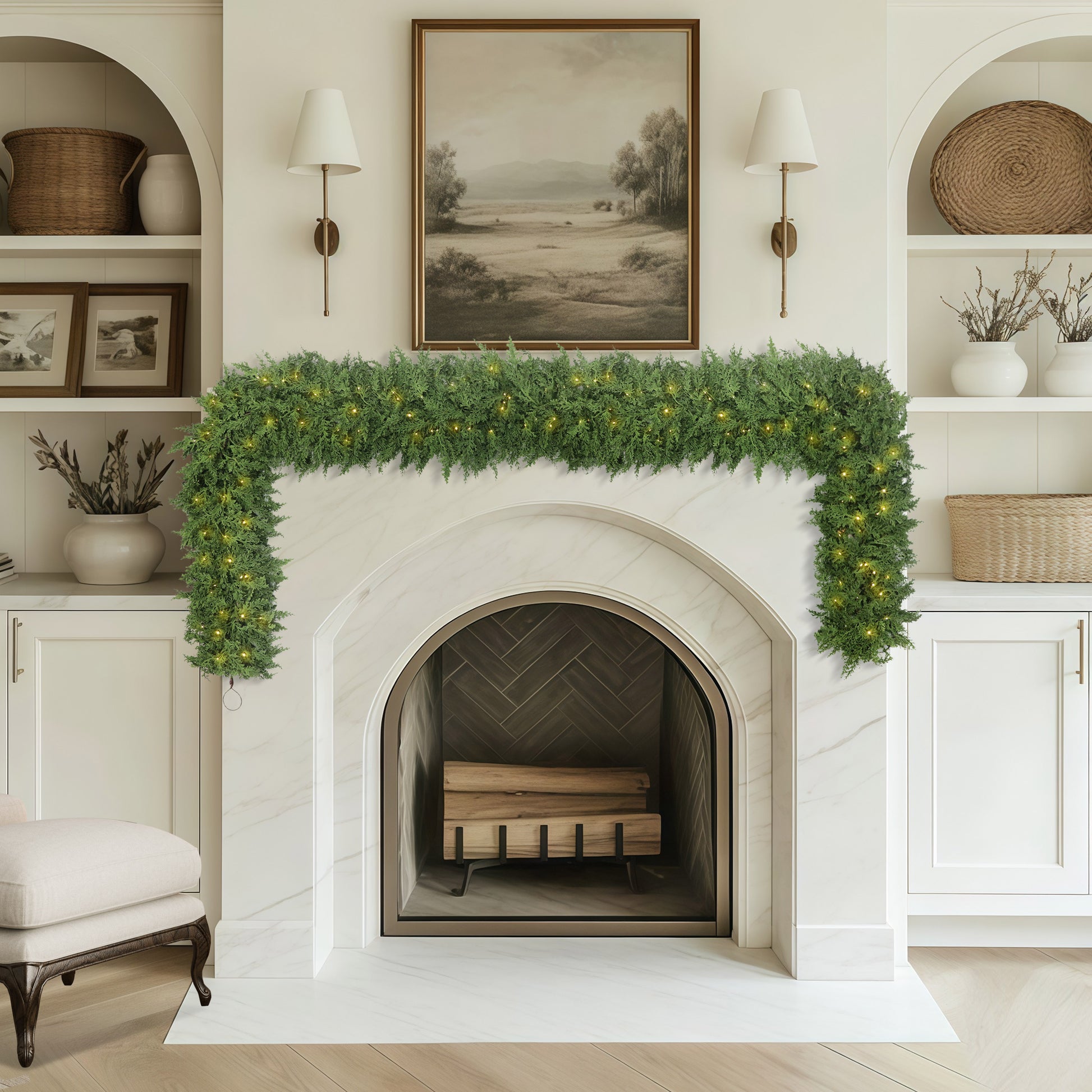 Transform any space with the sparkling elegance of the Prelit Deluxe 10ft Cedar Garland. Boasting 327 lush tips and a remarkable 200 Warm White LEDs, this piece delivers a powerful, continuous wash of soft light. Its Battery-Operated with integrated timer convenience means you can hang this magnificent, dense garland anywhere—from your front door to a tricky corner—without worrying about finding an outlet.