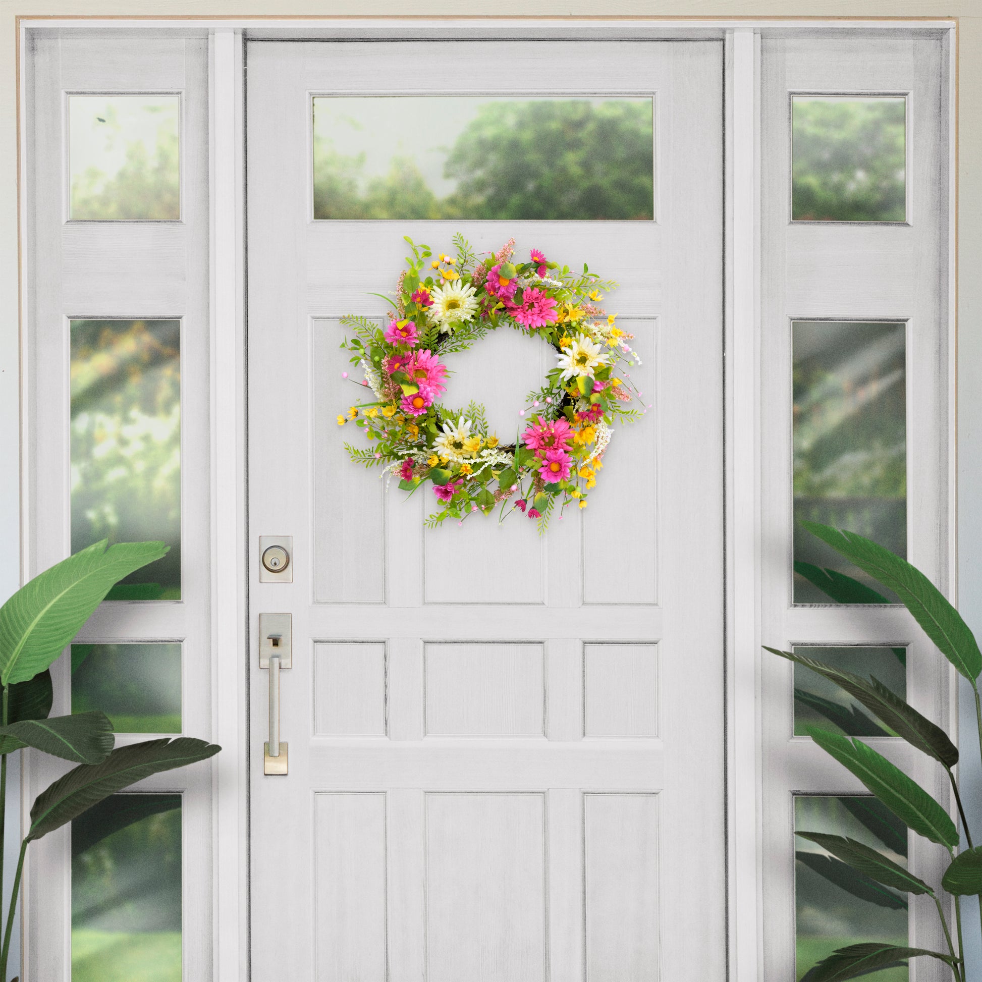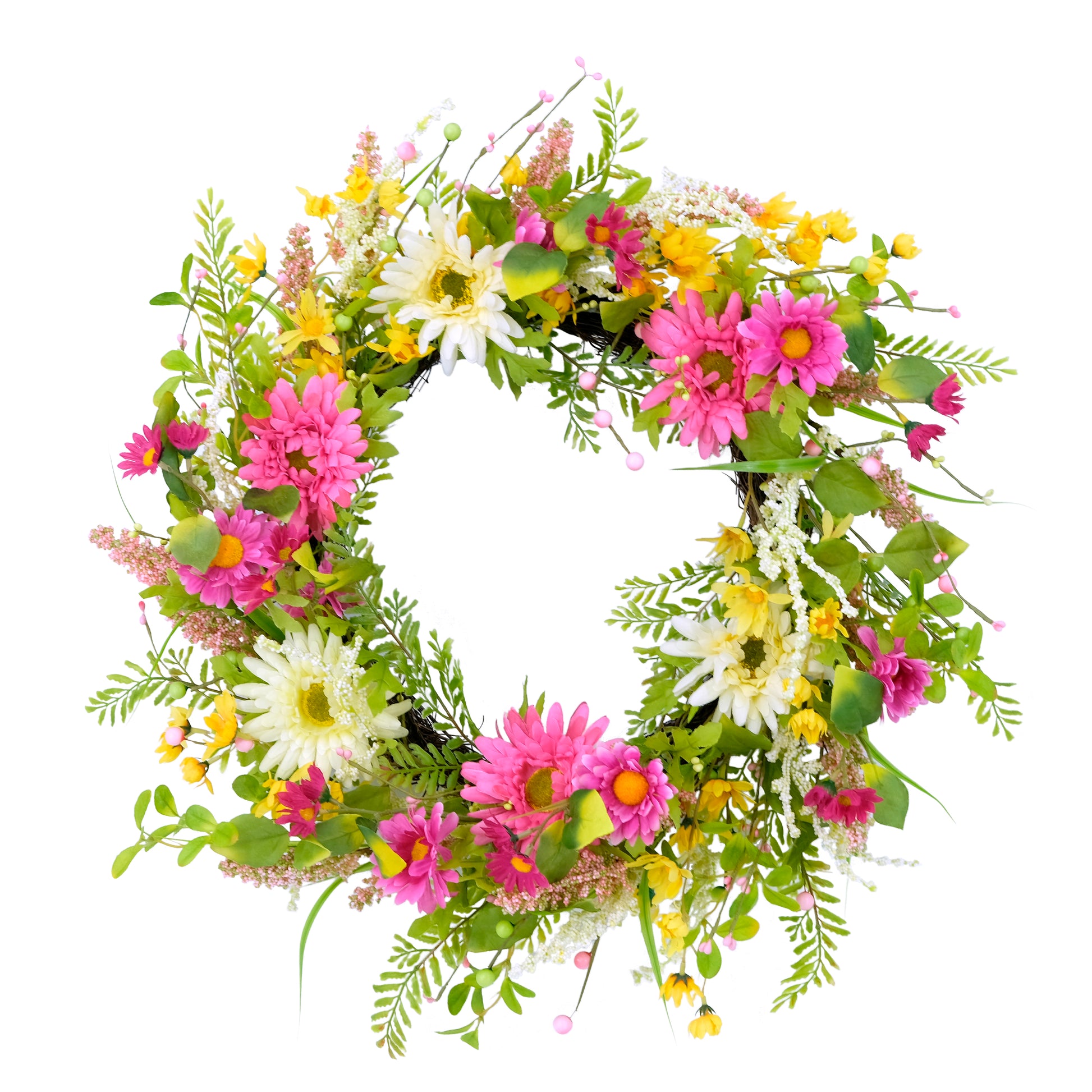Puleo International 24" Artificial Chrysanthemum Floral Spring Door Wreath
