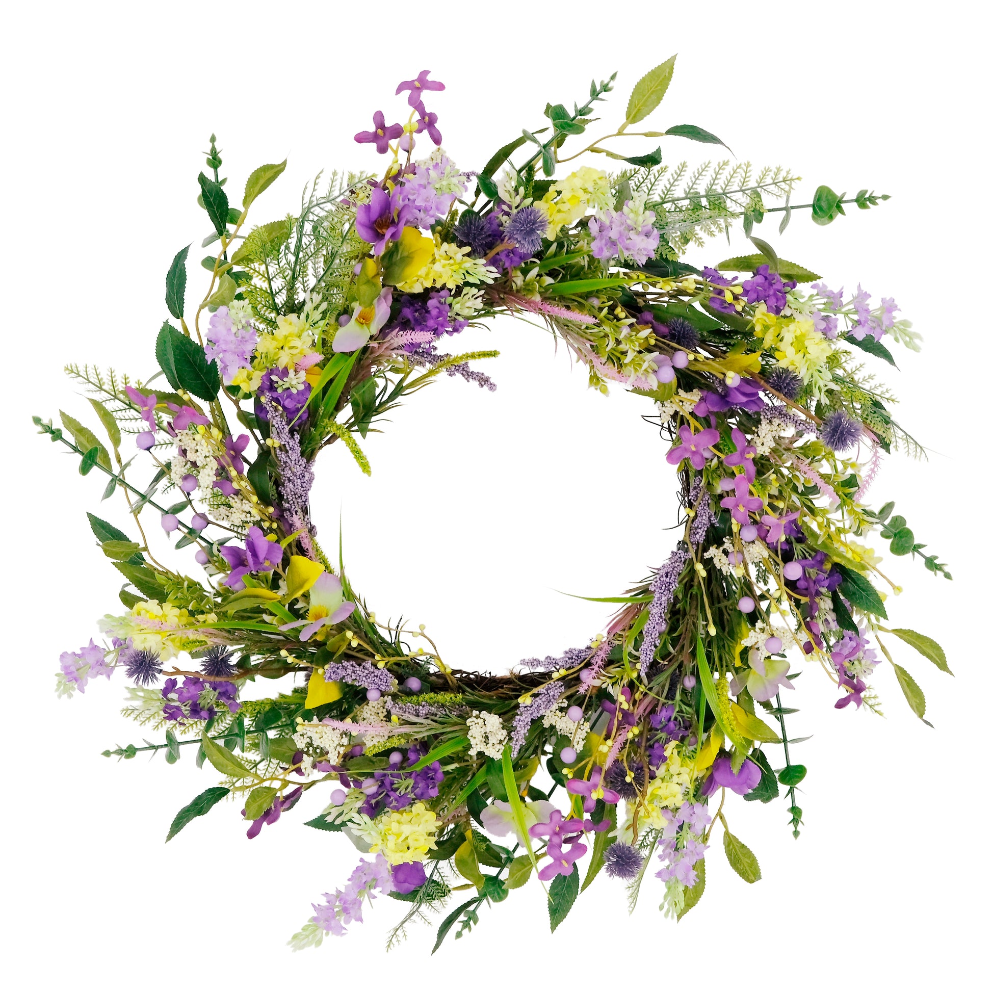 Puleo International 24" Artificial Lavender Floral Spring Door Wreath