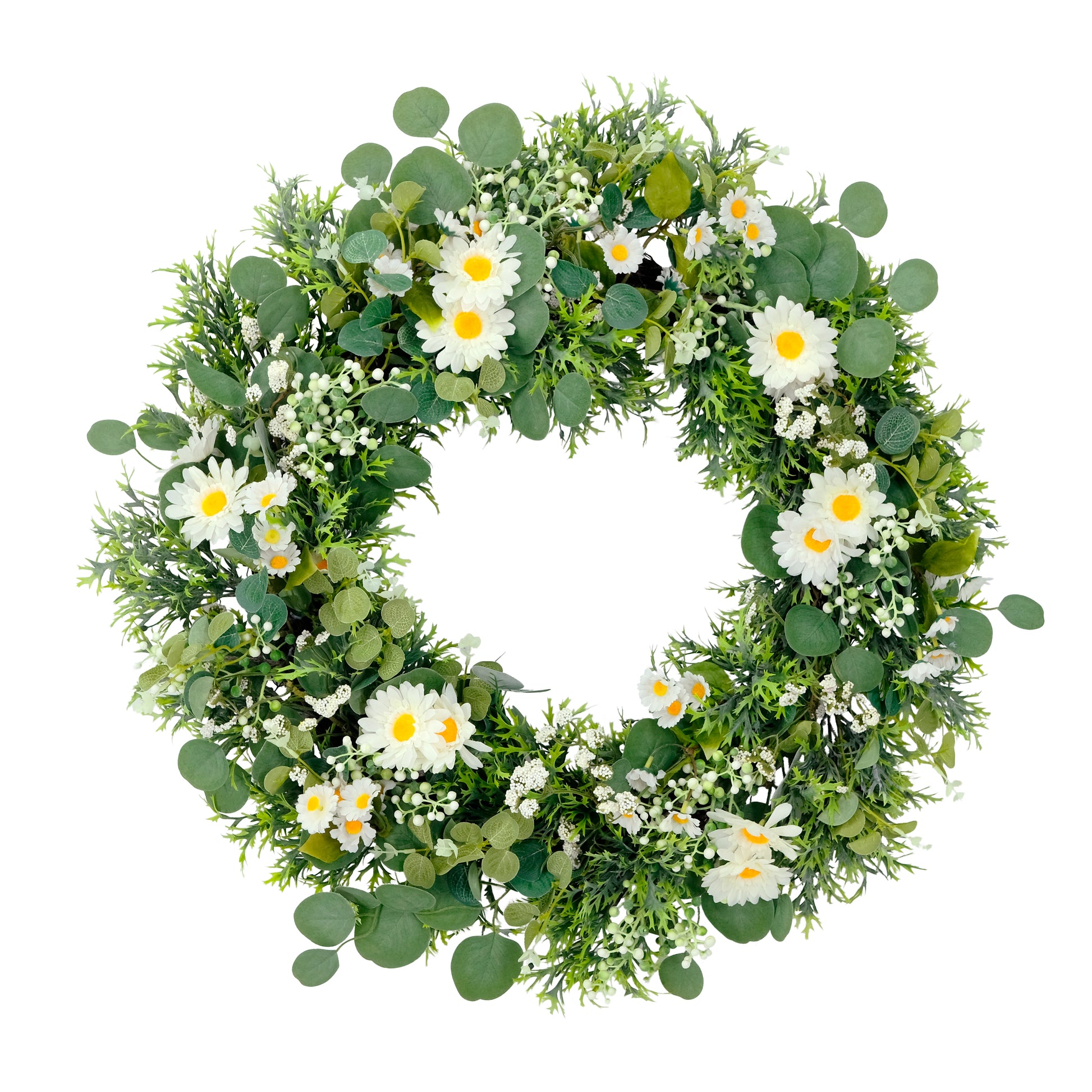 Puleo International 30" Artificial Daisy Floral Spring Door Wreath